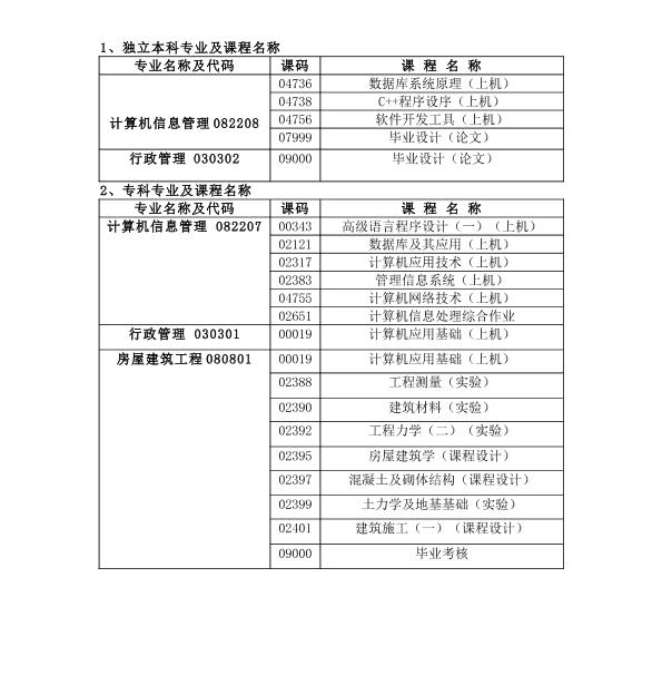 (1)原则上考生必须学完本门理论课程,成绩合格,方能报考该门课程的实验(上机)考核或课程设计。(报名时须出示理论合格的成绩单)