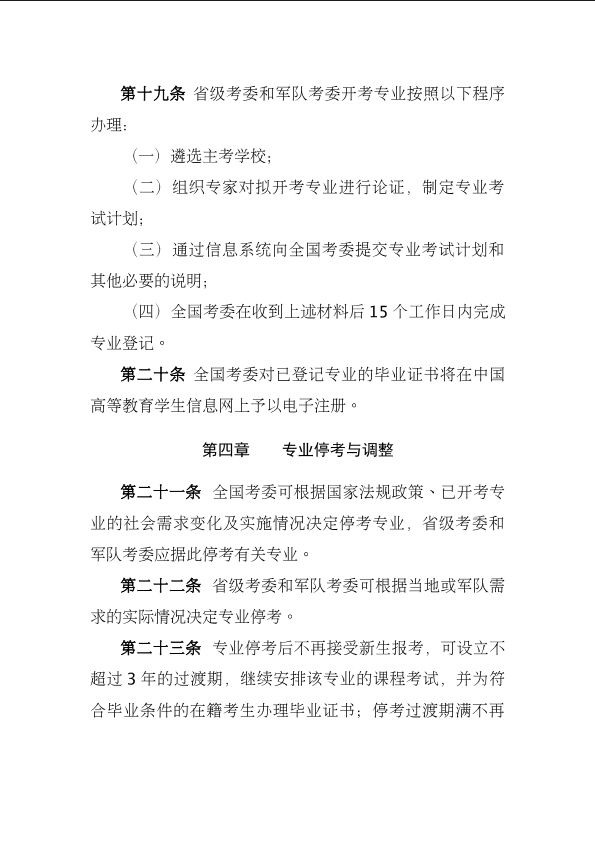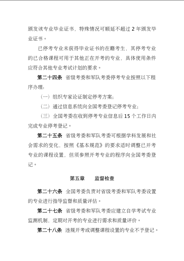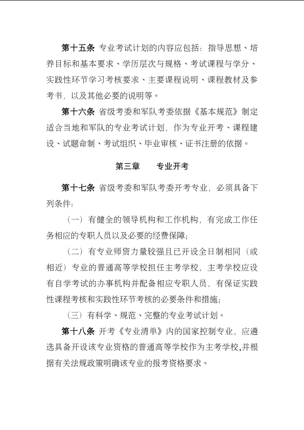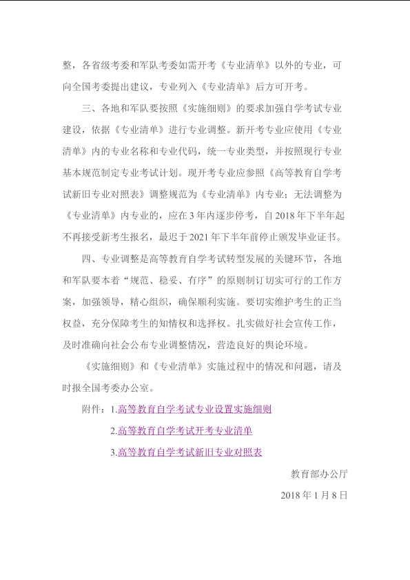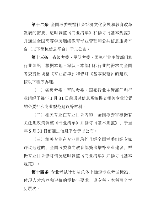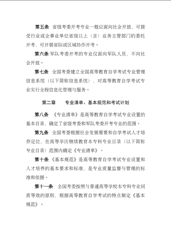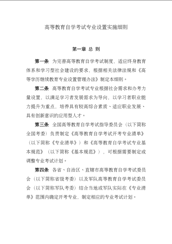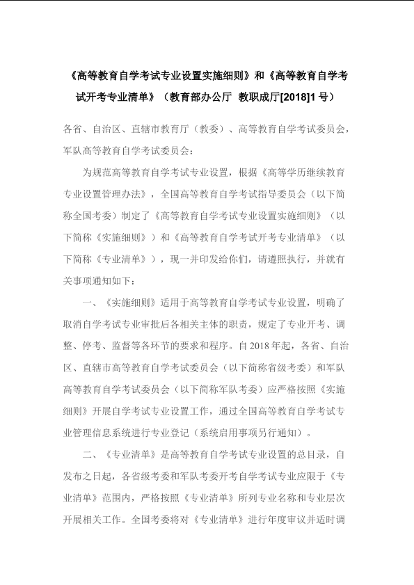 《高等教育自学考试专业设置实施细则》和《高等教育自学考试开考专业清单》
