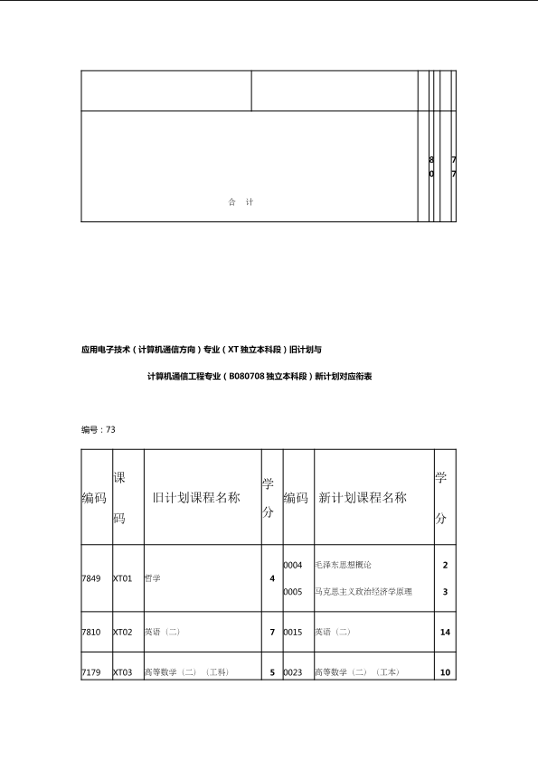 自考新旧课程对照表