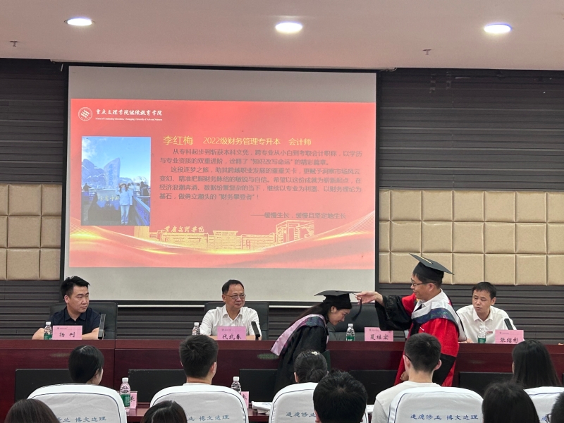 开学典礼现场,举行了高等学历继续教育学士学位获得者代表授位仪式,老生代表和新生代表分别进行了发言,领导和嘉宾为新生代表佩戴校徽。学院领导对新同学的到来表示热烈欢迎并介绍了学校近几年取得的优异成绩,希望同学们爱国爱校、不负韶华、敢于挑战、学业有成。